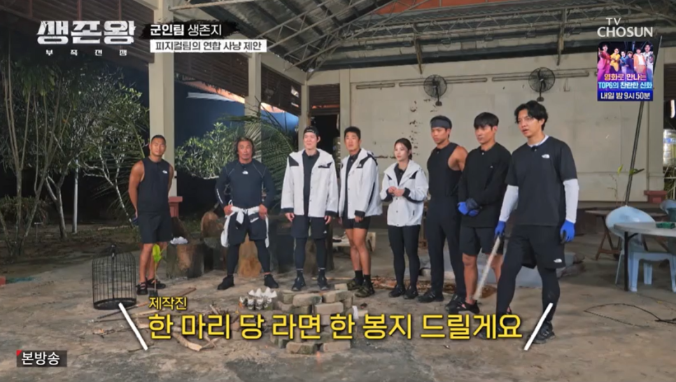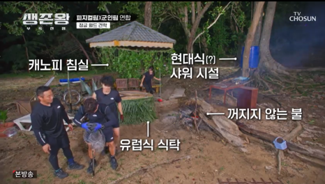 군인X피지컬팀 사냥을 마치고 돌아가는길에 병만족 생존지에들렸는데..
